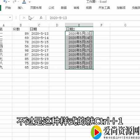 3、如果是这种日格式的,我们用同样的方式进行修改,不过是这种样式的就CTRL+1,然后选择一样的格式之后就可以了,同样这边的格式也可以改为刚刚的格式。
