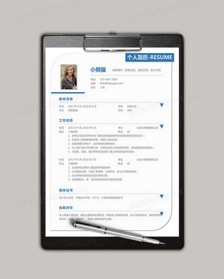 本作品内容为极简风财务文员出纳会计求职简历个人简历简历word简历, 格式为 wps, 大小1 MB, 页数为1, 请使用软件Word(2019)打开, 作品中主体文字及图片可替换修改,文字修改可直接点击文本框进行编辑,图片更改可选中图片后单击鼠标右键选择更换图片,也可根据自身需求增加和删除作品中的内容, 源文件无水印