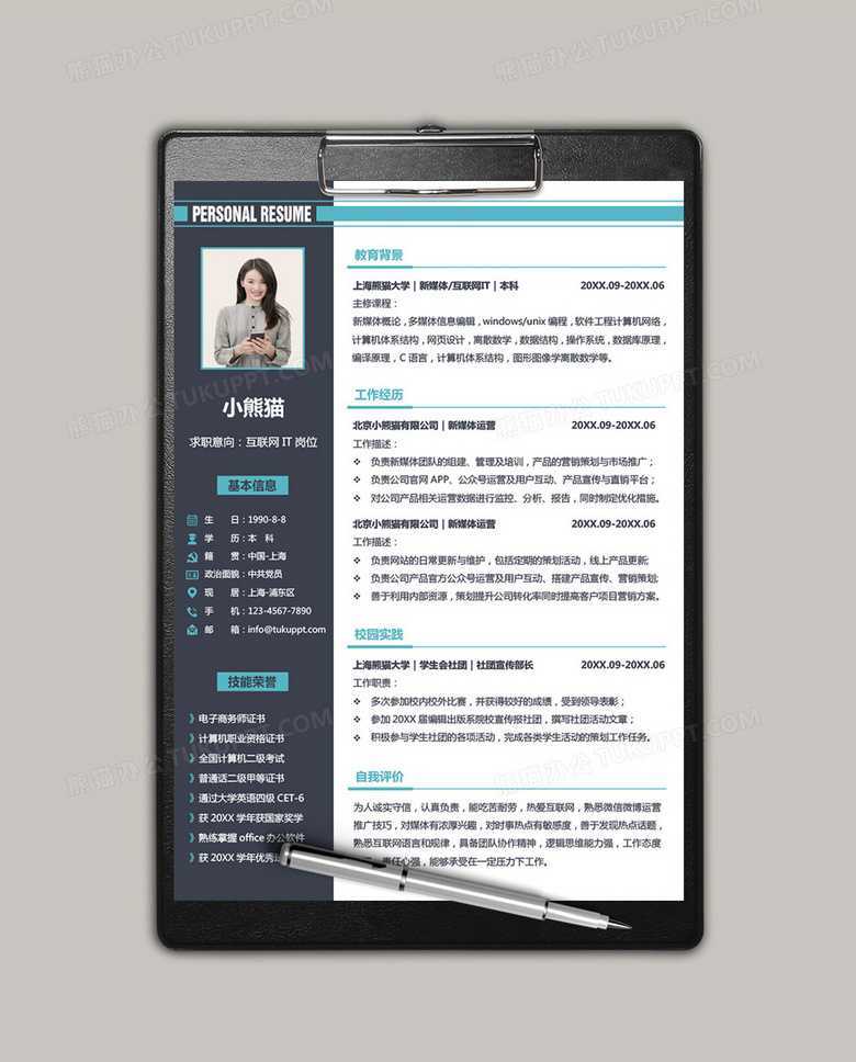 本作品内容为极简风互联网IT求职简历个人简历简历word简历, 格式为 docx, 大小4 MB, 页数为1, 请使用软件Word(2019)打开, 作品中主体文字及图片可替换修改,文字修改可直接点击文本框进行编辑,图片更改可选中图片后单击鼠标右键选择更换图片,也可根据自身需求增加和删除作品中的内容, 源文件无水印