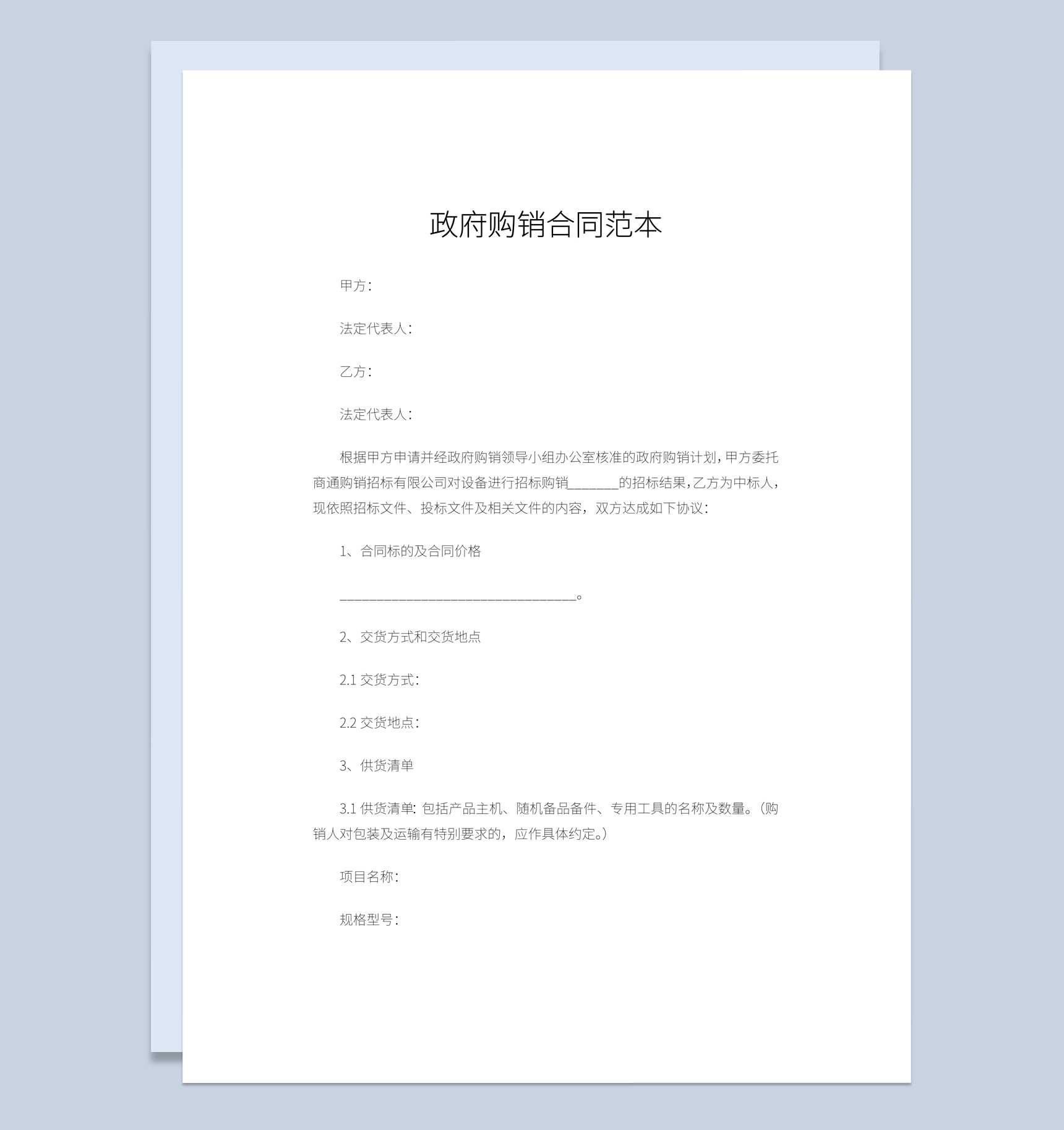 白色实用经典风格政府单位购销合同书范本Word模板是本站精美打造的合同范本Word通用模板,可以满足您在制作合同范本Word文档时的各种需求,本站是专注生产高质量Word模板的网站,您不但可以下载白色实用经典风格政府单位购销合同书范本Word模板,更有大量的政府购销合同书、政府购销合同Word模板可供下载使用。