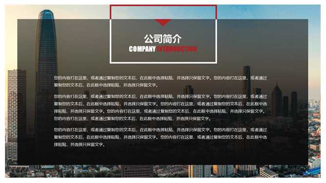 大气实用公司企业介绍PPT模板。一套企业公司介绍简介幻灯片模板,经典大气黑红主色调,页面类型丰富实用。