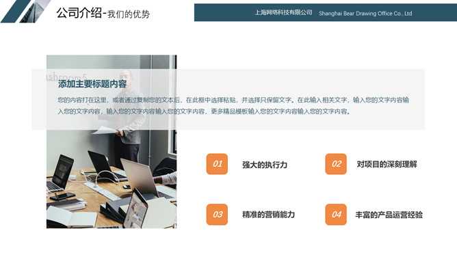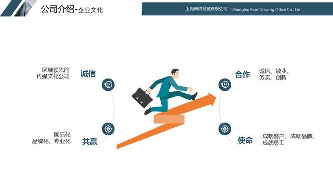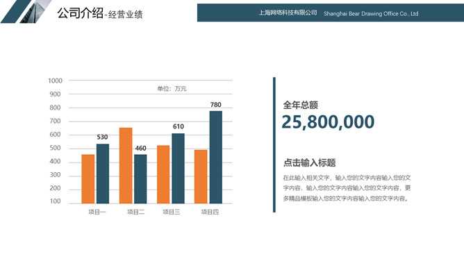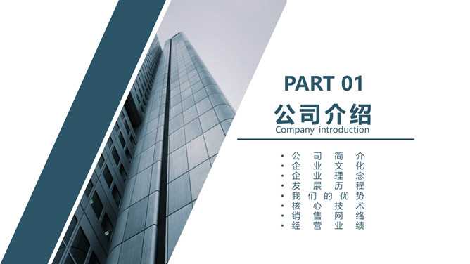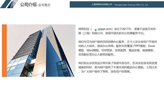 简洁公司企业简介PPT模板。一套企业公司介绍简介幻灯片模板,蓝橙配色,简约大气设计,动态播放效果。