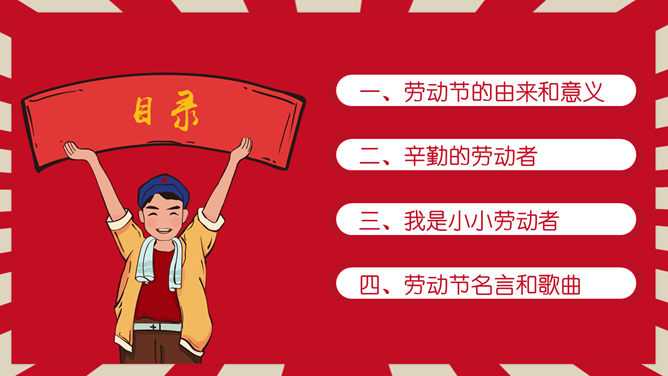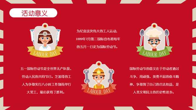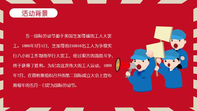 当前位置: 首页PPT模板节日模板劳动节正文 声明:本站所有文章,如无特殊说明或标注,均为本站原创发布。任何个人或组织,在未征得本站同意时,禁止复制、盗用、采集、发布本站内容到任何网站、书籍等各类媒体平台。如若本站内容侵犯了原著者的合法权益,可联系我们进行处理。ppt劳动节班会 华夏行水管理员永久会员 打赏 收藏 海报 链接