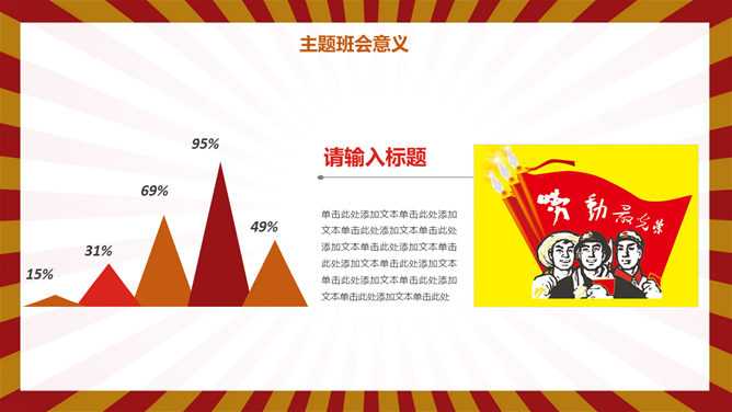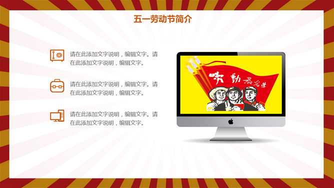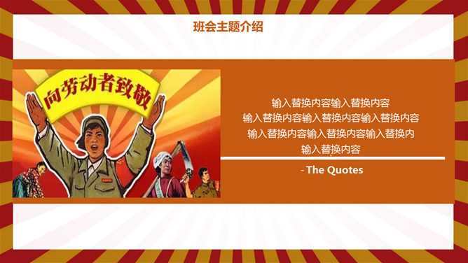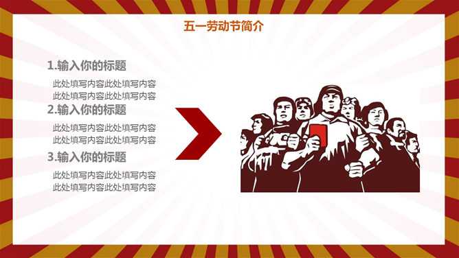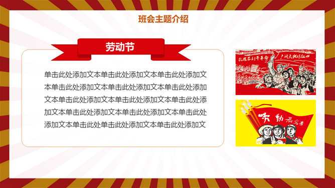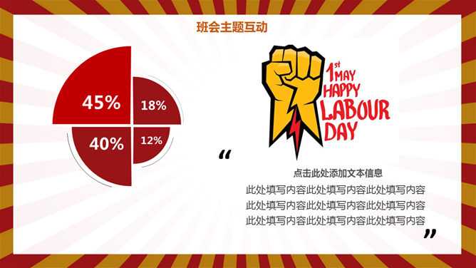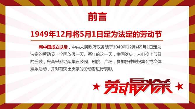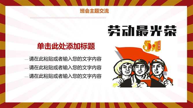当前位置: 首页PPT模板节日模板劳动节正文 声明:本站所有文章,如无特殊说明或标注,均为本站原创发布。任何个人或组织,在未征得本站同意时,禁止复制、盗用、采集、发布本站内容到任何网站、书籍等各类媒体平台。如若本站内容侵犯了原著者的合法权益,可联系我们进行处理。ppt班会课件 华夏行水管理员永久会员 打赏 收藏 海报 链接