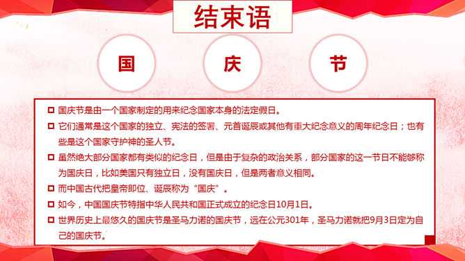 当前位置: 首页PPT模板节日模板国庆节正文 声明:本站所有文章,如无特殊说明或标注,均为本站原创发布。任何个人或组织,在未征得本站同意时,禁止复制、盗用、采集、发布本站内容到任何网站、书籍等各类媒体平台。如若本站内容侵犯了原著者的合法权益,可联系我们进行处理。ppt模板欢度国庆 华夏行水管理员永久会员 打赏 收藏 海报 链接