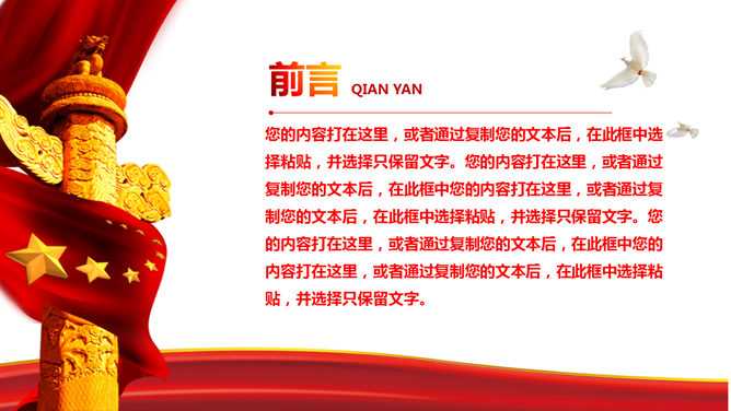 当前位置: 首页PPT模板节日模板建党节正文 声明:本站所有文章,如无特殊说明或标注,均为本站原创发布。任何个人或组织,在未征得本站同意时,禁止复制、盗用、采集、发布本站内容到任何网站、书籍等各类媒体平台。如若本站内容侵犯了原著者的合法权益,可联系我们进行处理。ppt建党模板 华夏行水管理员永久会员 打赏 收藏 海报 链接