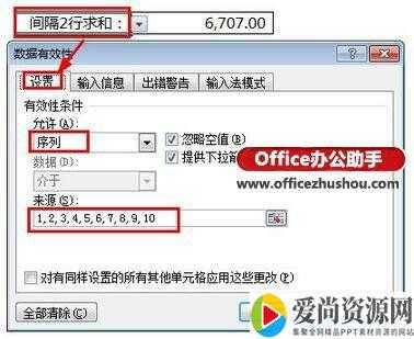 2、有效性做好后,注意F3单元格,表面看里面多了这几个字“间隔行求和”,这几个字刚才做有效性的时候明明是没输入的。实际上,这个是单元格的自定义格式来,以前的微信里讲过的。选中F3单元格,ctrl+1,数字选项卡,分类里自定义,类型处输入如下内容:"间隔"#"行求和:"
