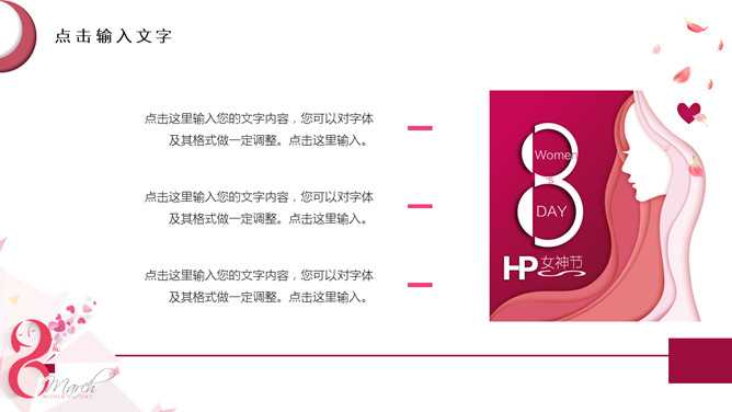 当前位置: 首页PPT模板节日模板妇女节正文 声明:本站所有文章,如无特殊说明或标注,均为本站原创发布。任何个人或组织,在未征得本站同意时,禁止复制、盗用、采集、发布本站内容到任何网站、书籍等各类媒体平台。如若本站内容侵犯了原著者的合法权益,可联系我们进行处理。ppt三八妇女节女生节 华夏行水管理员永久会员 打赏 收藏 海报 链接