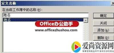 定义名称的方法是单击菜单“插入→名称”,在定义名称对话框中进行定义,这里将“1月工资”表中的姓名区域B3:B14定义为“姓名”,如图。