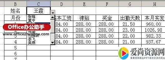 其余单元格依此类推。这样,只要在单击C1单元格右侧的下拉箭头选择员工姓名就可以查看其所有月份的工资情况。