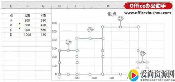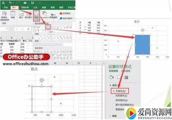 以散点图的点为顶角,依次对齐和收放做4个矩形…