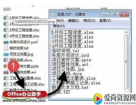 然后双击这个文件,就会得到一个名为“目录”的记事本文件,里面会包含当前文件夹内的所有文件名。