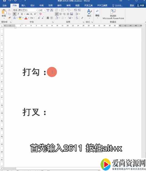 1. 首先输入2611,按住ALT+X,就可以打出勾