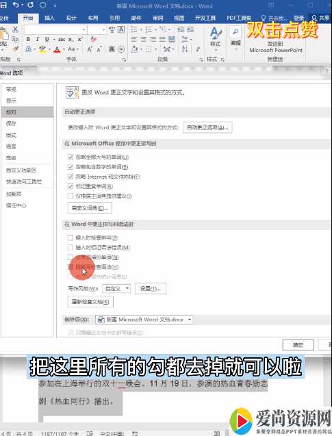 2. 去除下划线只需要点击文件选项,在校对里面,把这里所有的勾都去掉就可以了