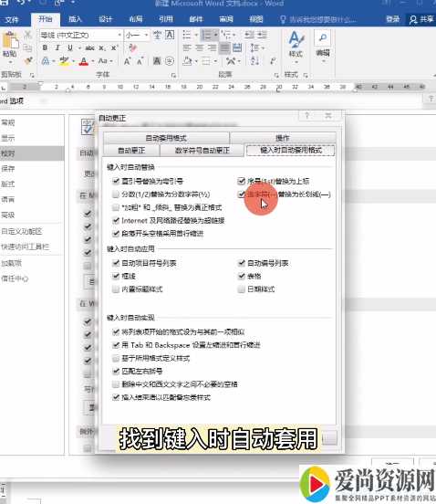 2. 找到键入时自动套用,取消这个自动编号列表,点击确定就完成了。