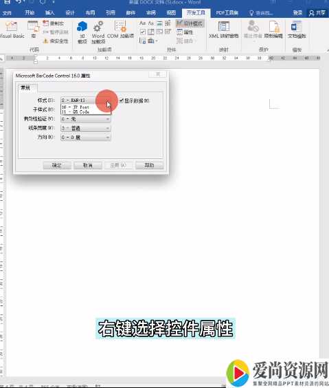 按住鼠标画出二维码,右键选择控件属性,样式选择11点击确定,调整一下大小,右键选择属性表,在value后面输入你想说的话,注意这里只能输入英文或者链接