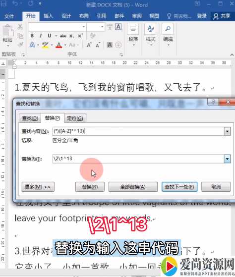 2. 替换为输入这串代码:\2\1^13 ,点击全部替换,确定,这样就搞定了