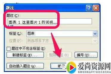 2、点击插入题注后,弹出题注对话题,我们在题注处输入我们的图表的说明或是其它一些信息,然后点击确定,如图。