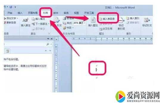 5、插入图表目录:我们的题注都添加完成之后,我们就可以插入图表目录了。我们把鼠标的光标停留在插入图表目录的地方。同样,点击引用功能卡,选择插入表目录,如图。
