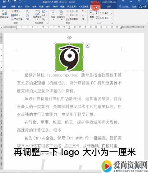 2、然后CTRL加v粘贴再调整一下logo大小为一厘米,然后CTRL加l左对齐,关闭页眉页脚编辑状态就可以了。